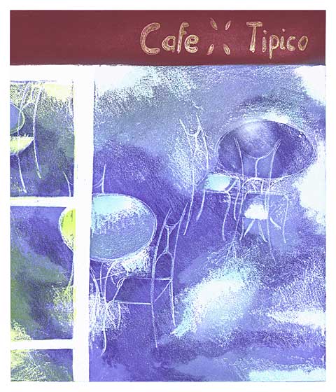 Gabriele Dangl Cafe Tipico Original-Aquatinta-Radierung Bildgröße: 36 x 31 cm Papiergröße: 60 x 50 cm Gedruckt auf Zerkall Bütten 250g/m2. Auflage: 100 Stk. nummeriert und signiert Preis: € 290,- inkl. 10% Ust.